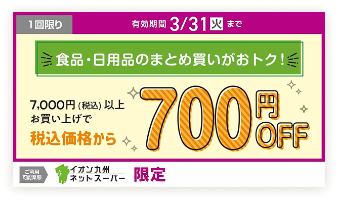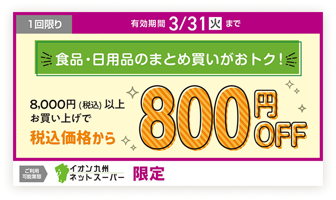 ※一部対象外商品がございます。※イオン九州ネットスーパーのみ有効です。