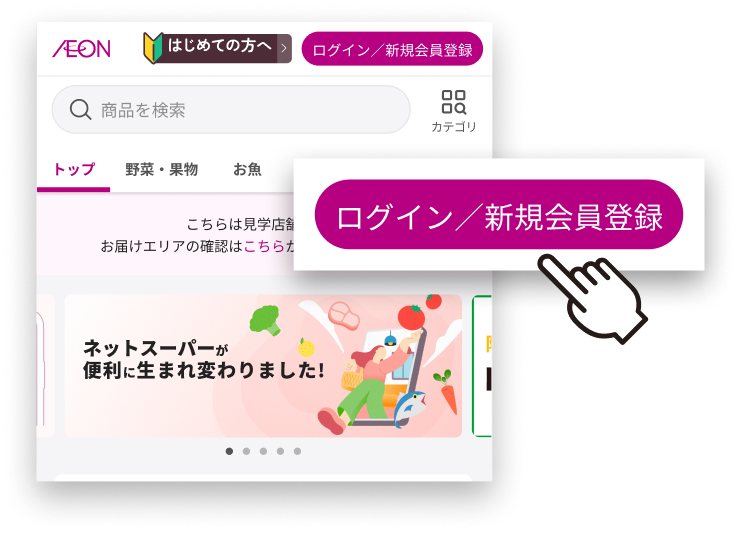 まずは「ログイン/新規会員登録をする」ボタンを押して、